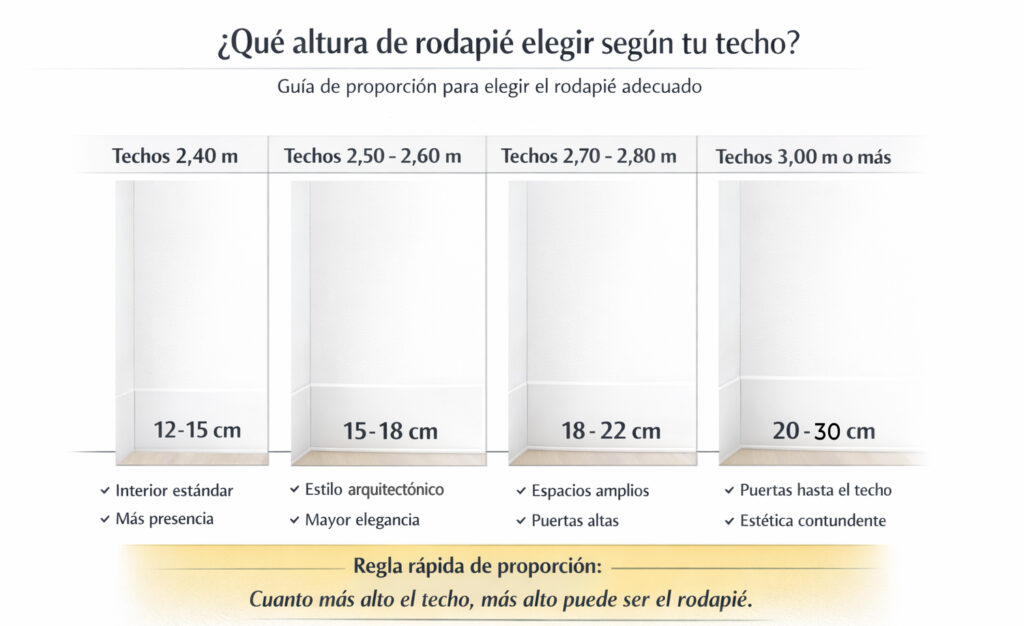 ¿Qué altura de rodapié elegir según la altura del techo?