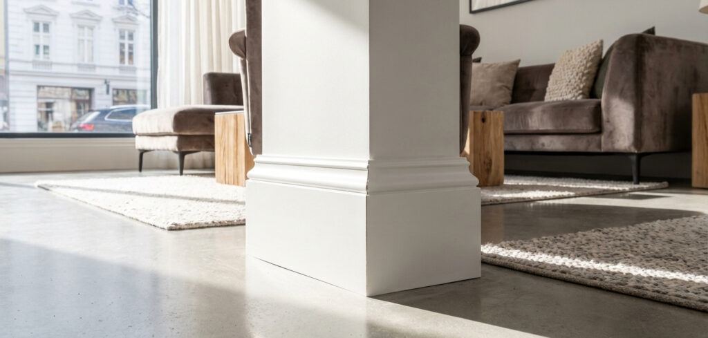Un rodapié lacado no es un elemento secundario. Es la línea que une suelo y pared, la que ordena visualmente el espacio y la que delata la calidad real de una instalación.