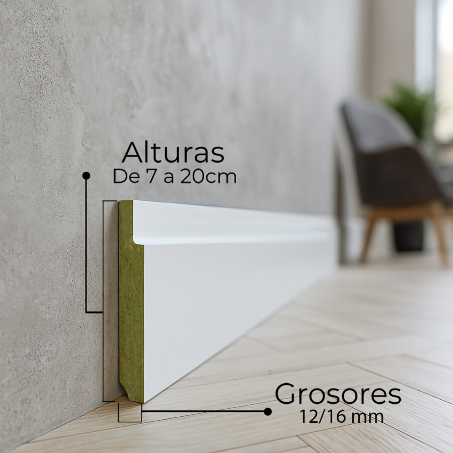El modelo IMPERIO destaca por su diseño sobrio y moderno, con un perfil superior suavemente escalonado que aporta un matiz decorativo sin estridencias. Una solución elegante y versátil para quienes buscan un remate limpio pero con personalidad. Fabricado en DM hidrófugo de alta densidad, garantiza durabilidad, resistencia a la humedad y acabado lacado profesional sin melamina. Es la elección perfecta para interiores modernos y atemporales.