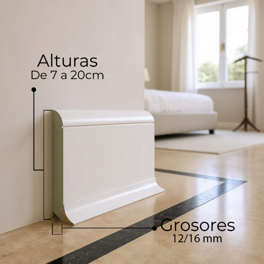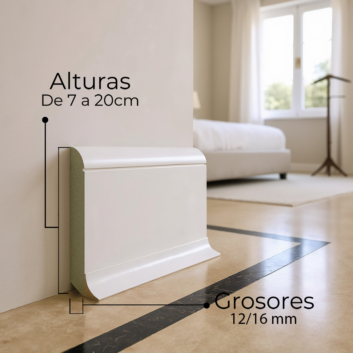Su moldura superior redondeada aporta un toque sofisticado, mientras que la base perfilada con un junquillo añade volumen y carácter a cualquier estancia. Perfecto para interiores que buscan un equilibrio entre elegancia y pureza visual. Fabricado en DM hidrófugo, garantiza durabilidad, resistencia a la humedad y un lacado profesional sin melamina.