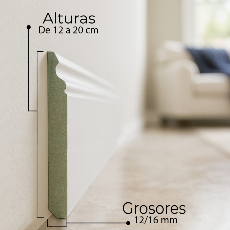 El modelo Zosa combina líneas tradicionales con una ejecución limpia y sofisticada. Su moldura superior suavemente escalonada añade volumen y estilo, realzando la base de la pared sin recargar el conjunto. Fabricado en DM hidrófugo, garantiza durabilidad, resistencia a la humedad y un lacado profesional sin melamina.