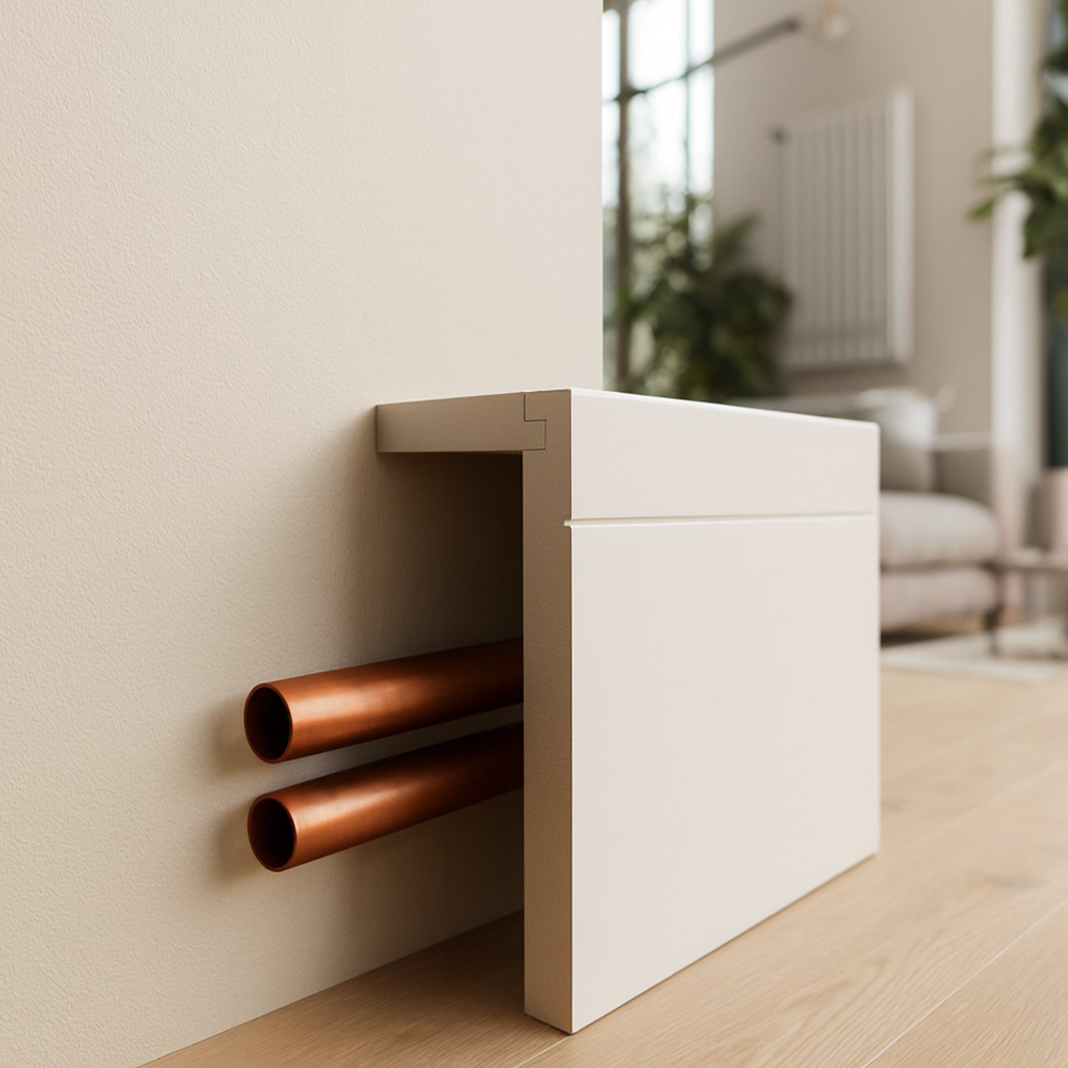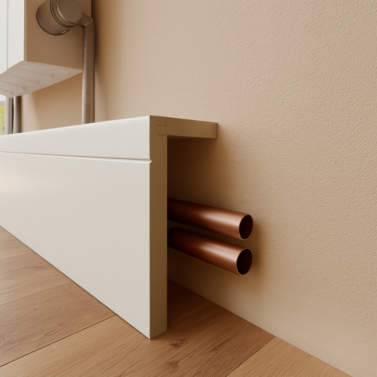 Cuando la sencillez es la clave, el Rodapié Cubre-tubos Recto lo hace todo fácil: oculta lo que no quieres ver sin necesidad de obras ni complicaciones.