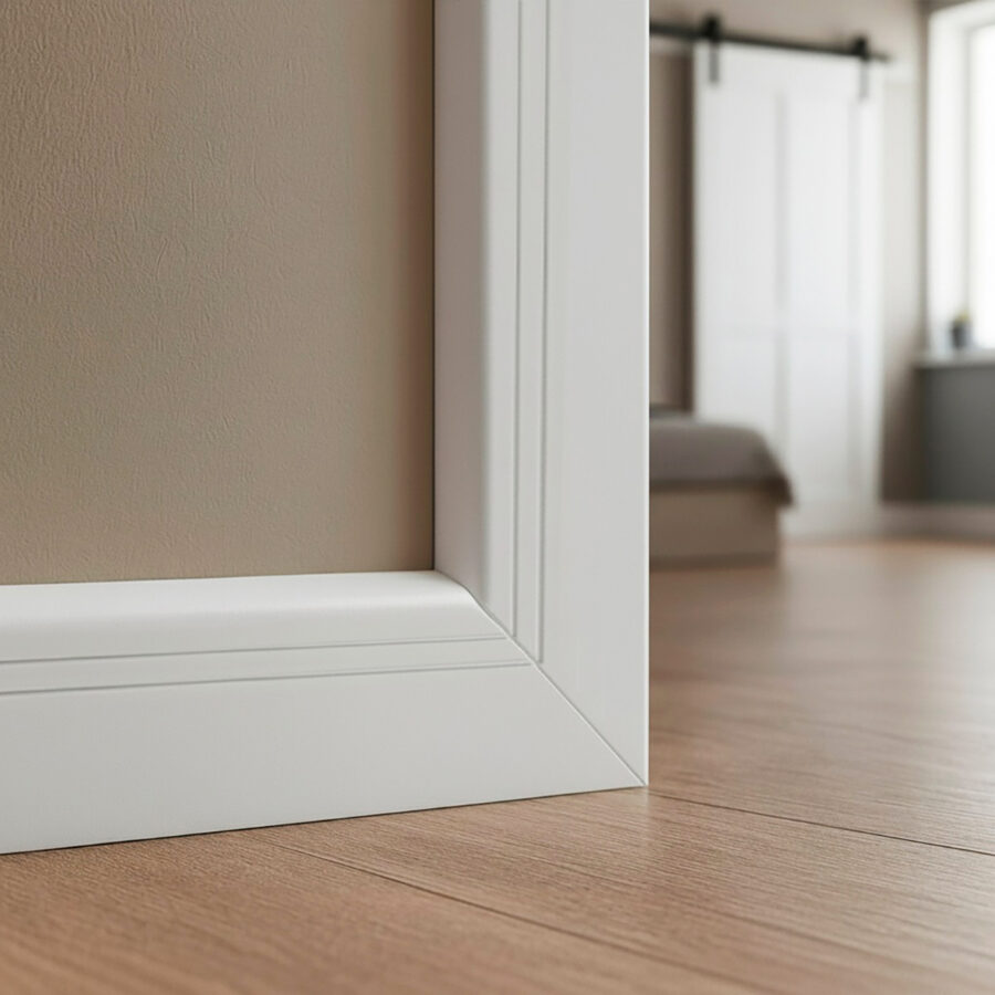 La Tapeta Canto Redondo 2 canales es perfecta para aportar carácter a puertas y paredes, ya sea como remate independiente o unida al rodapié mediante inglete para conseguir un efecto de continuidad impecable.
